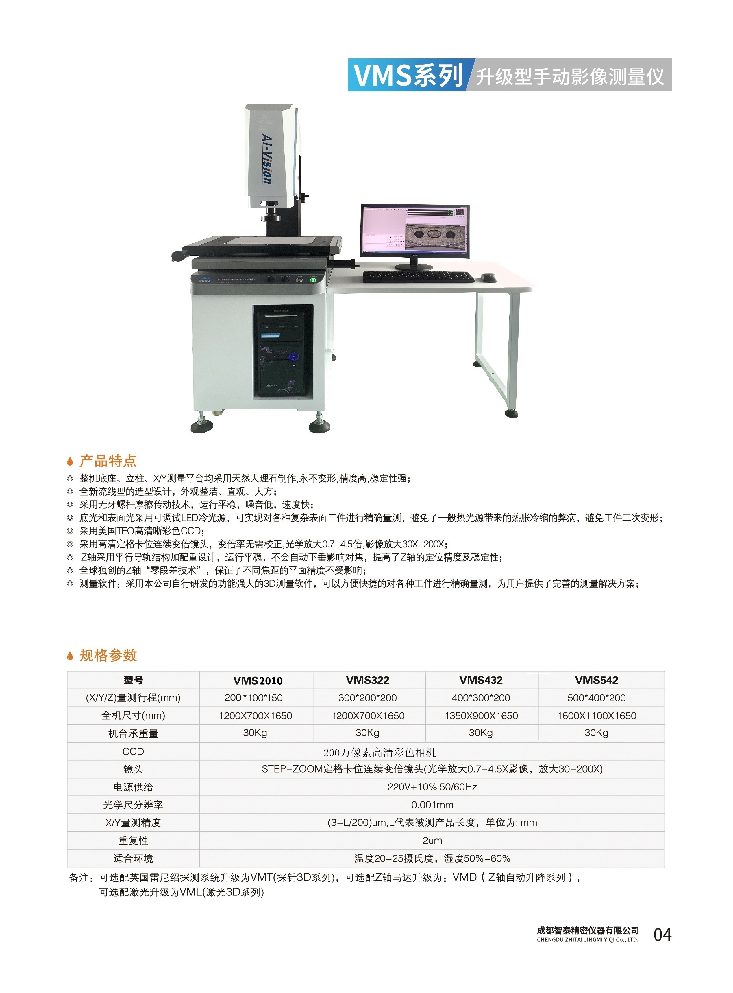 成都智泰精密儀器有限公司專注于精密測量儀器,人工智能,智能制造領(lǐng)域,專業(yè)從事智能視覺自動化檢測解決方案的貿(mào)易型企業(yè)。公司成立于2011年,位于天府之國成都,現(xiàn)有行業(yè)精英十余人,辦公倉儲面積200余平米。 公司主要產(chǎn)品為精密光學影像測量儀,精密輪廓形狀測量儀,精密機器人定位系統(tǒng),精密智能視覺尺寸檢測儀器,精密表面缺陷智能檢測設備,工業(yè)工程特種機器人。 公司憑借過硬的技術(shù)實力和產(chǎn)品方案,率先進入智能視覺自動化檢測領(lǐng)域,推廣以精密智能視覺自動化檢測為基礎的機器人自動化應用,公司不斷整合上下游的資源,擁有巨大的全產(chǎn)業(yè)鏈優(yōu)勢。客戶群體覆蓋了我國精密制造業(yè)的多數(shù)領(lǐng)域,包括航空、航天、軍工、汽車、新能源、光伏、食品,精密電子、精密機械、模具、PCB、LCD、五金、塑膠、醫(yī)療、教育、計量及科研院所等行業(yè)。 公司創(chuàng)新的產(chǎn)品能滿足生產(chǎn)與制造行業(yè)客戶的要求,訓練有素的工程師能及時提供多種技術(shù)服務,如解...